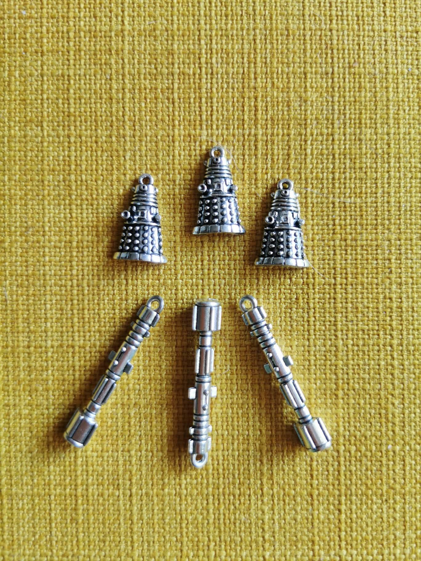Dr Who’s Sonic Screwdriver Silver Charm Pendant - Set of Three