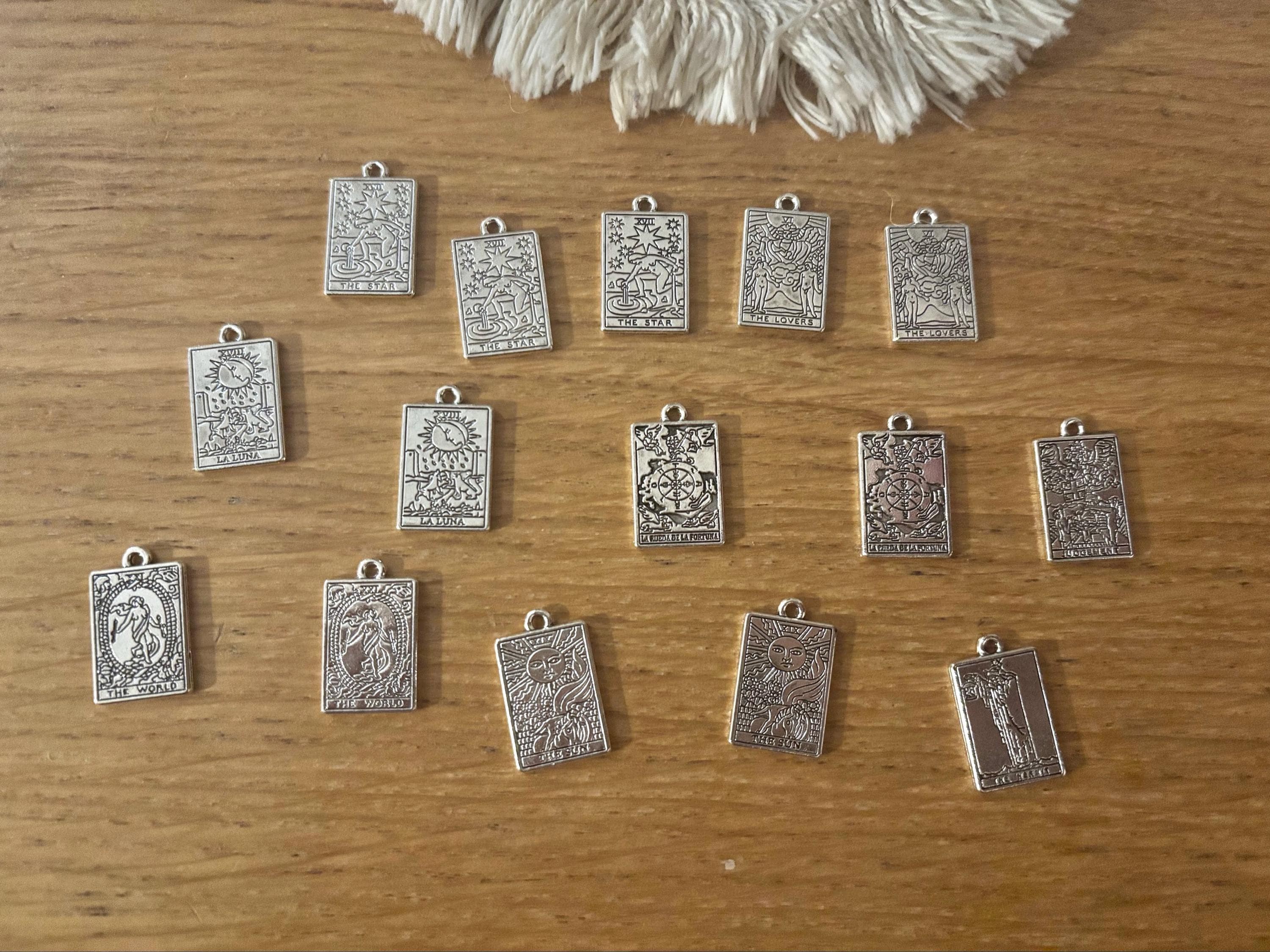 Traditional Silver Tarot Card Charm Pendants - Set of Six