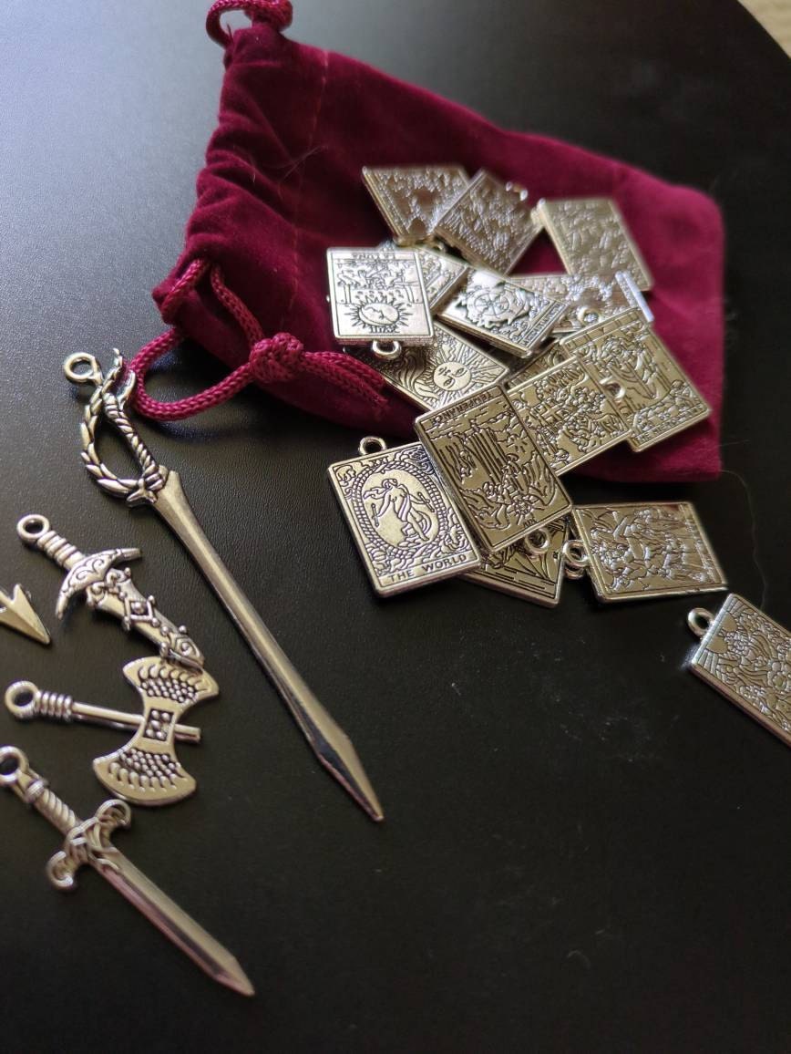 Traditional Silver Tarot Card Charm Pendants - Set of Seventeen